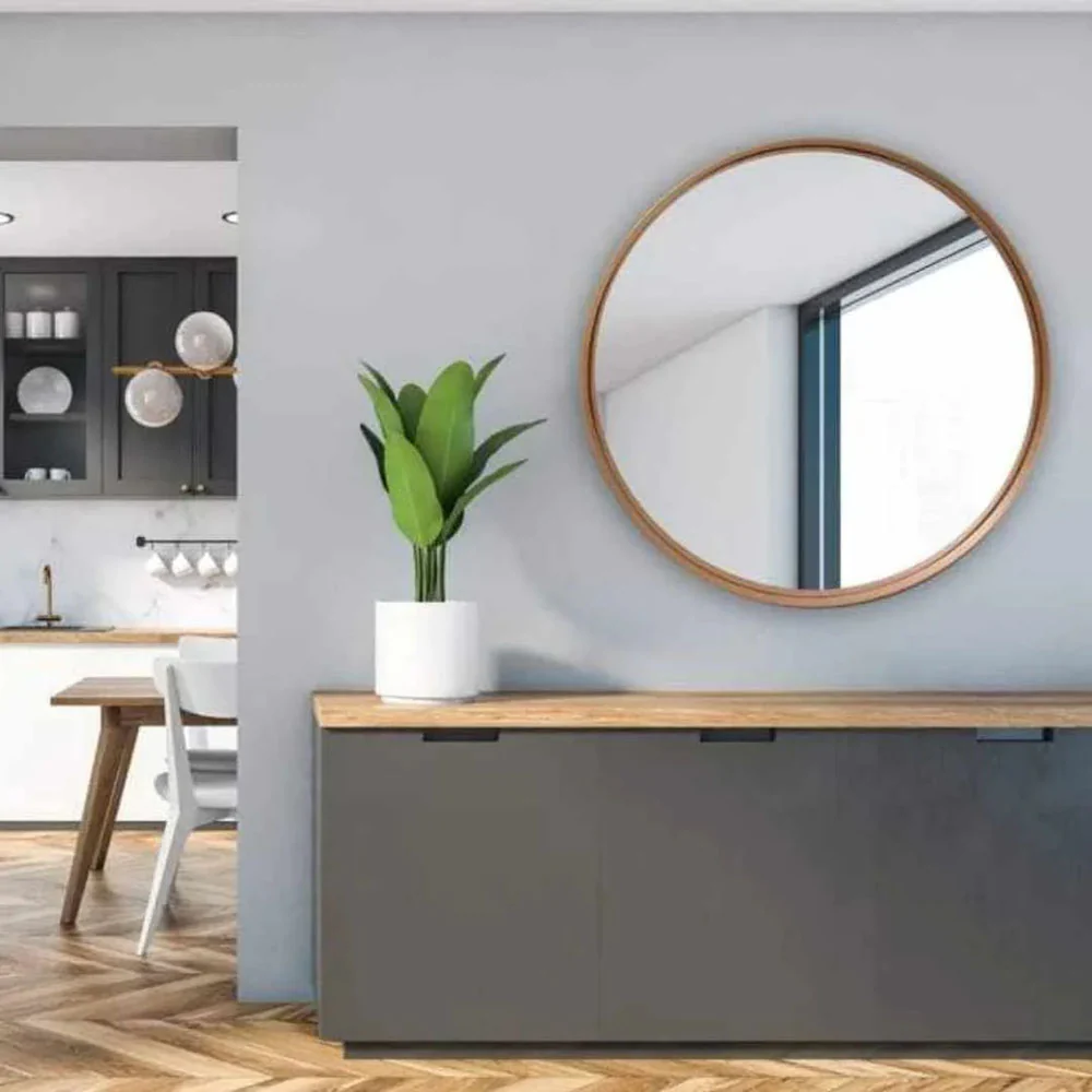 With Its Round Mirror and copper-golden matte colour, this mirror will suit almost any environment or room.