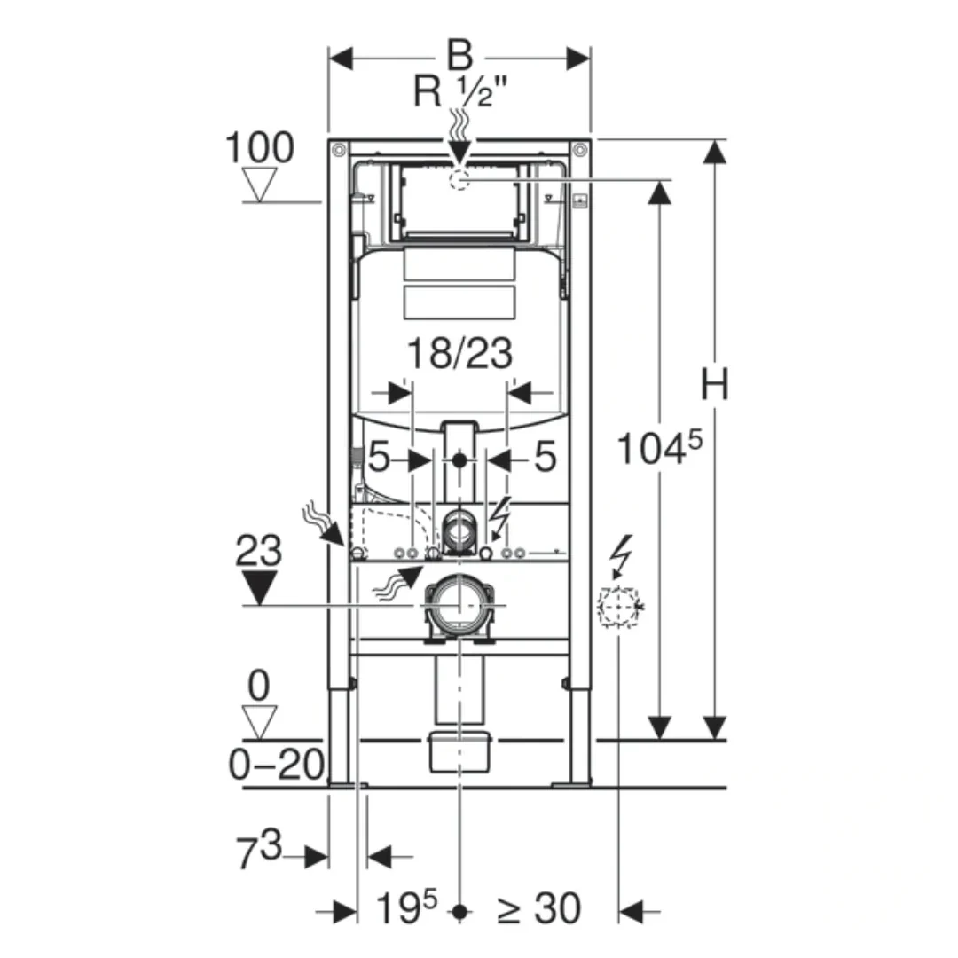 It is versatile - The Geberit wall hung toilet can you utilized in any space. Perfect for drywall installations. Following sanitary ware standards, the Duofix can accommodate any type of wall hung toilet, allowing you to choose exactly what you desire. The Geberit installation frame comes complete with installation frame, water supply connection, flush bend, threaded rods for fixing points.