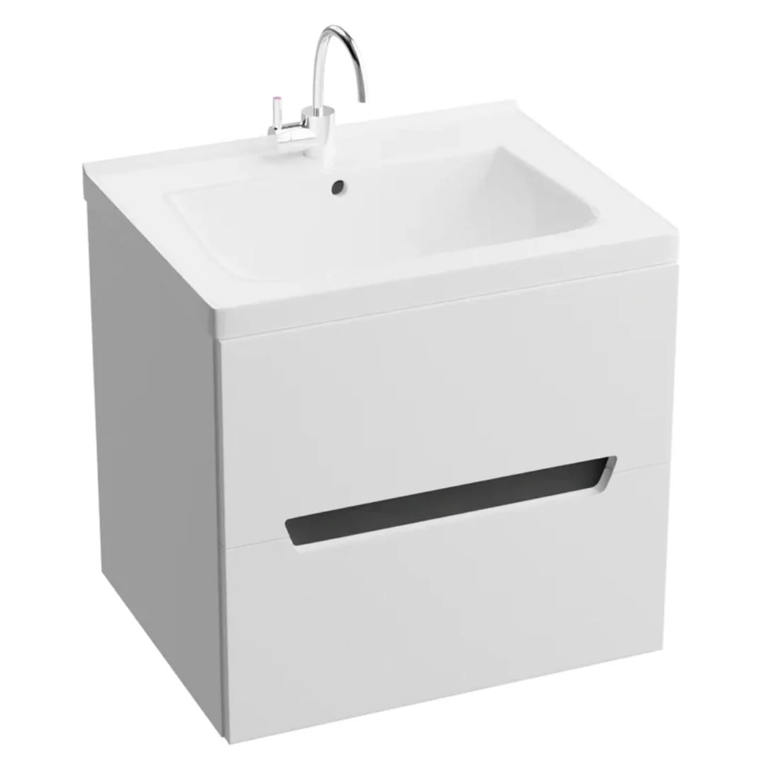 This modern Knox White & Black Vanity & Kansas Basin is the perfect wall hung vanity unit to maximize the space in you bathroom and allows for storage of bathroom items underneath.