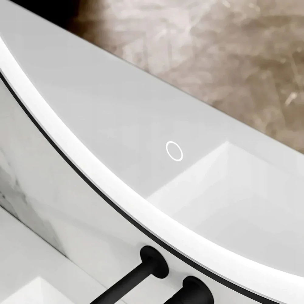 Their outer ring produces a strong yet soft light, giving you the visibility you need without the harsh glare that can be found with other similar lights. The mirror is activated by a touch button to the front of the glass and illuminates in white when in use. The power switch is at the back of the mirror and is always visible with its own LED backlight. The standby function can be disabled by holding down the button until the light goes off.